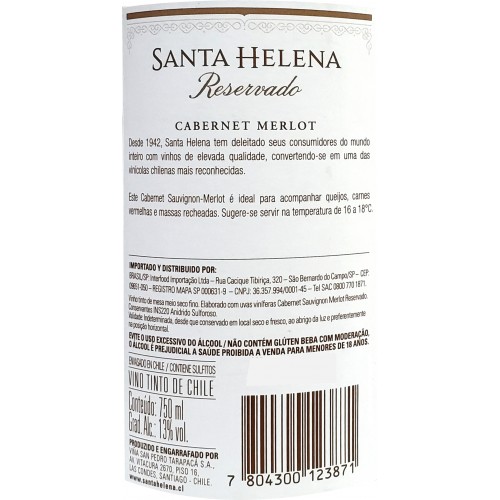 VINHO CHILENO SANTA HELENA CABERNET MERLOT 750ML