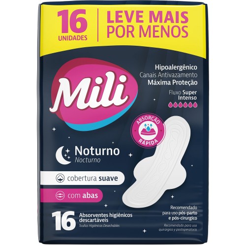 ABSORVENTE MILI MULHER NOTURNO COM ABAS 16UN